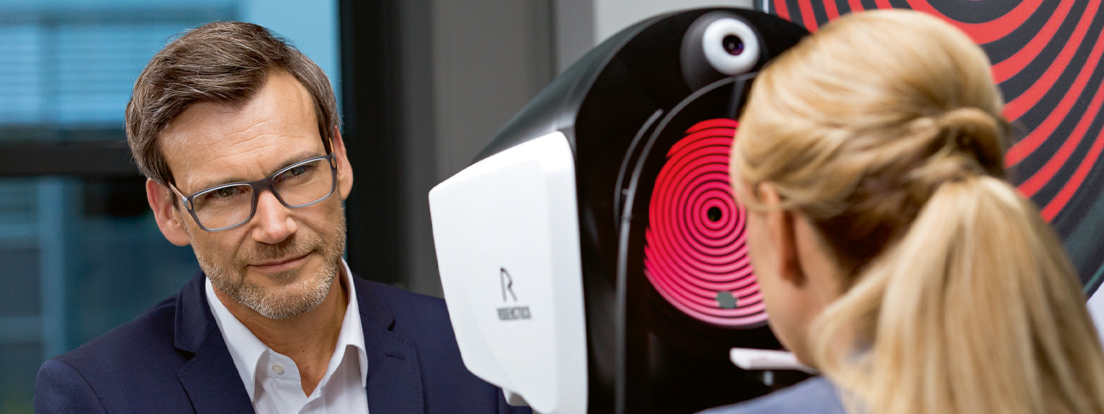 Mit dem Rodenstock DNEye-Scanner II können wir von Optik Frielingsdorf Ihre Dioptrienwerte bis zu 25x genauer bestimmen als mit klassischen Messmethoden und erstellen gleichzeitig einen individuellen Fingerabdruck Ihrer Augen.